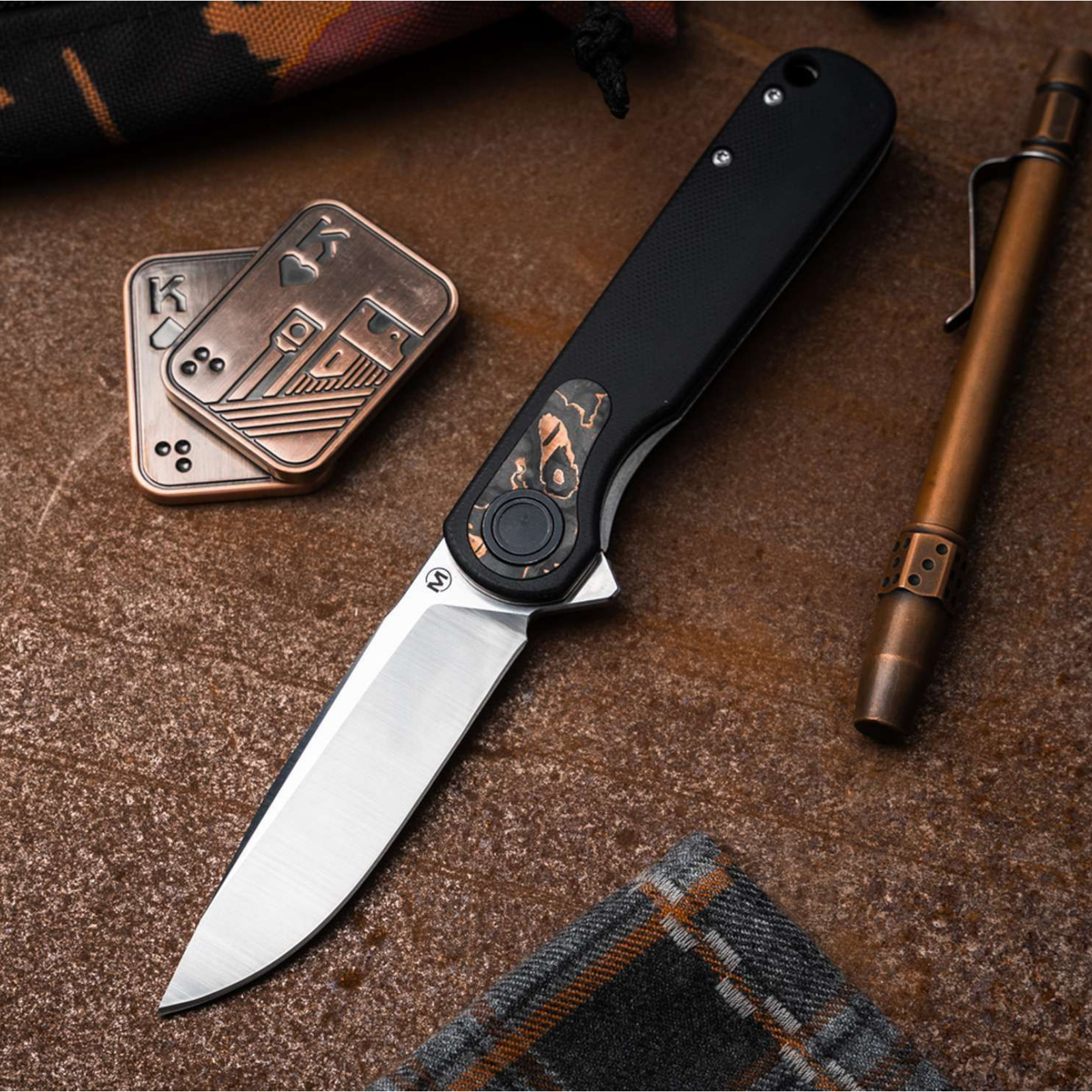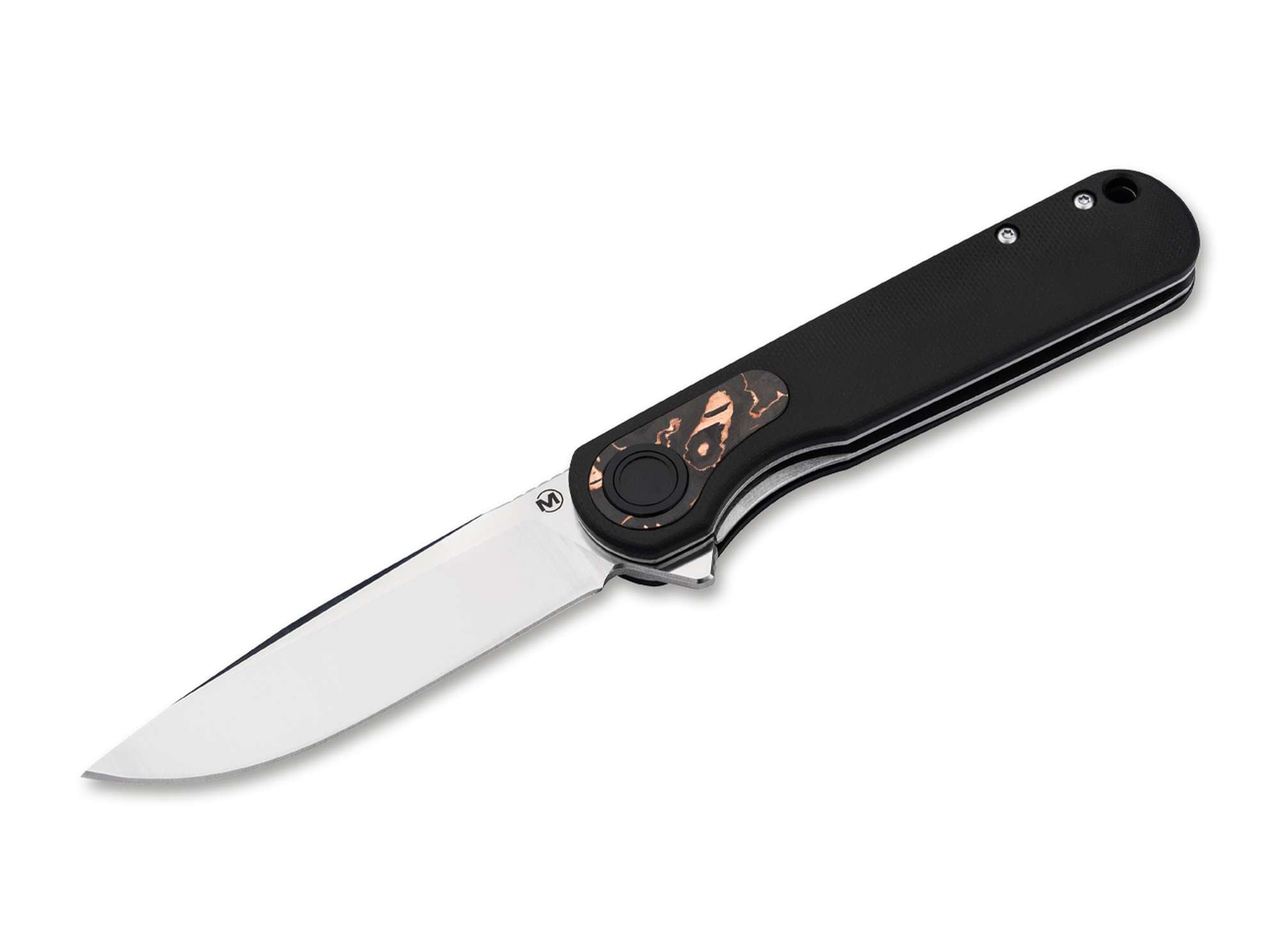 Die kugelgelagerte Droppoint-Klinge aus 440B Edelstahl öffnet einhandtauglich über den Flipper und verriegelt sicher per Linerlock. Das Satin-Finish sorgt für eine elegante Optik und gute Alltagstauglichkeit.