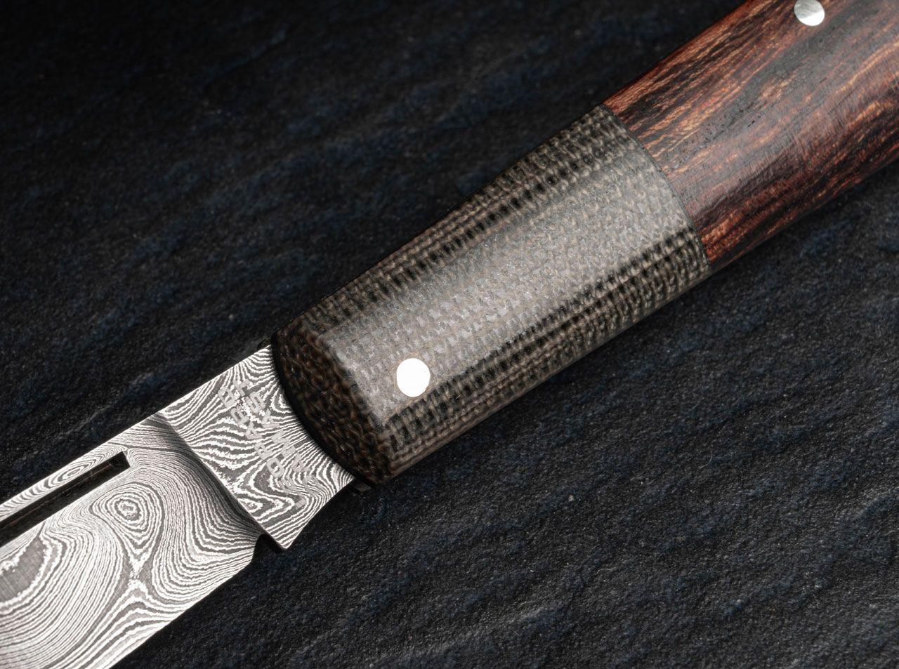 Das in Integralbauweise ausgeführte Taschenmesser ist mit einem konturierten Griffkörper aus olivgrünem Canvas Micarta ausgestattet, der aus dem Vollen gefräst wird und auch die charakteristischen Backen des Barlow bildet. Die leichtgewichtige Konstruktion kann so komplett auf zusätzliche Liner aus Metall verzichten. Dank der ebenfalls konturierten Griffschalen aus zertifiziert importiertem Wüsteneisenholz liegt das edle Gentlemanmesser überaus angenehm in der Hand. Mit hochwertigem Filz-Etui zur Aufbewahrung, Echtheitszertifikat und individueller Seriennummer. Handgefertigt in der Böker Messer-Manufaktur Solingen.