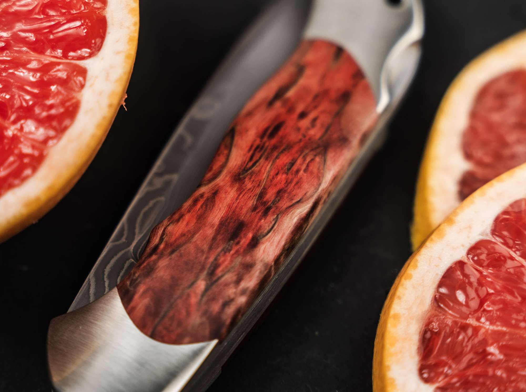 verleiht dem Messer einen feurigen, unverwechselbaren Charakter und sorgt gleichzeitig für eine angenehme, sichere Haptik.
