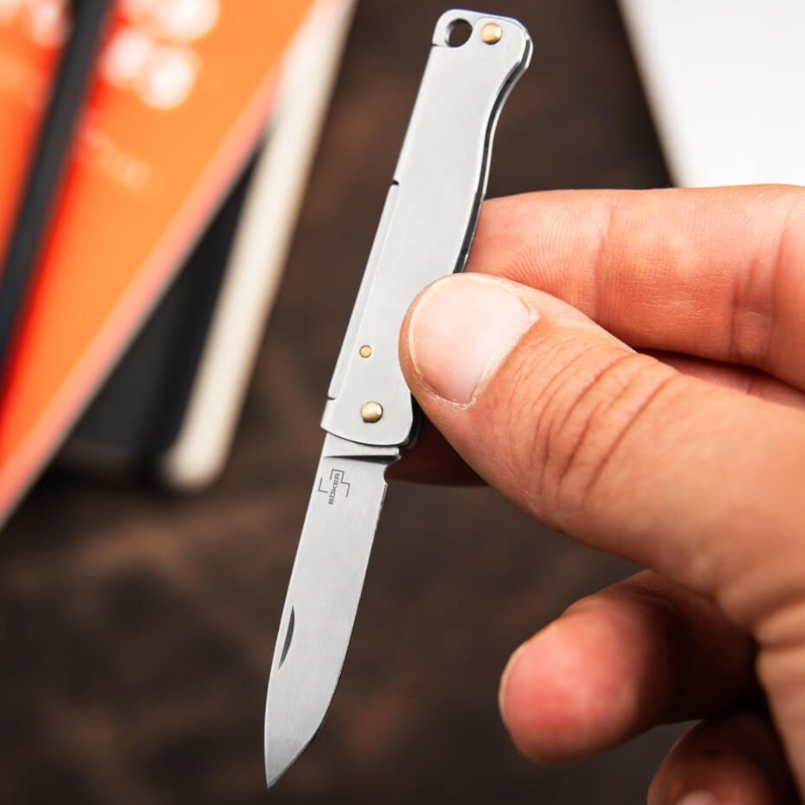 Die Droppoint-Klinge aus 12C27-Sandvik-Stahl wird klassisch per Nagelhau geöffnet und arbeitet zuverlässig ohne Klingenverriegelung (Slipjoint). Mit nur 11 g Gewicht und der Fangriemenöse ist es der ideale Begleiter für Schlüsselbund, Hosentasche oder Lanyard.