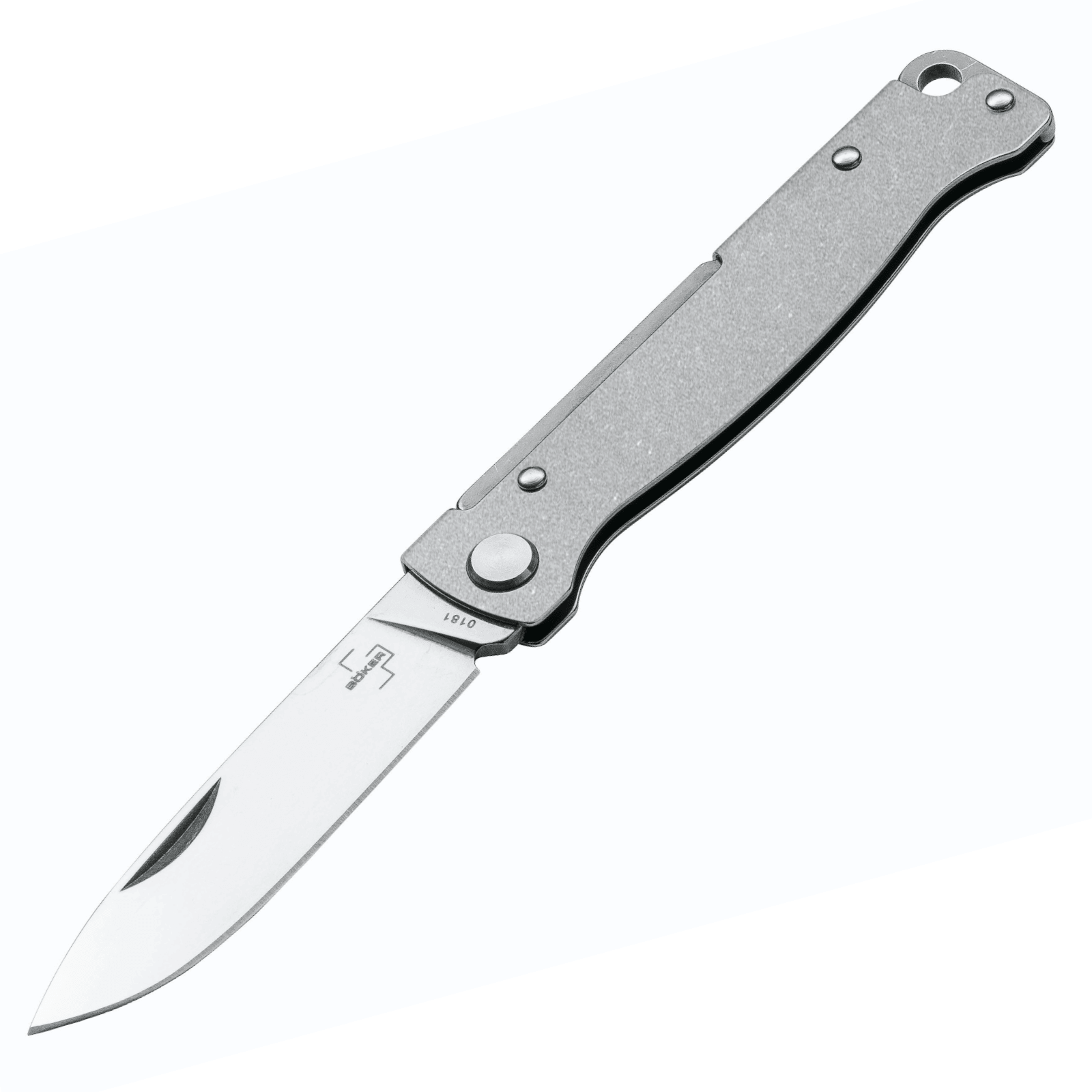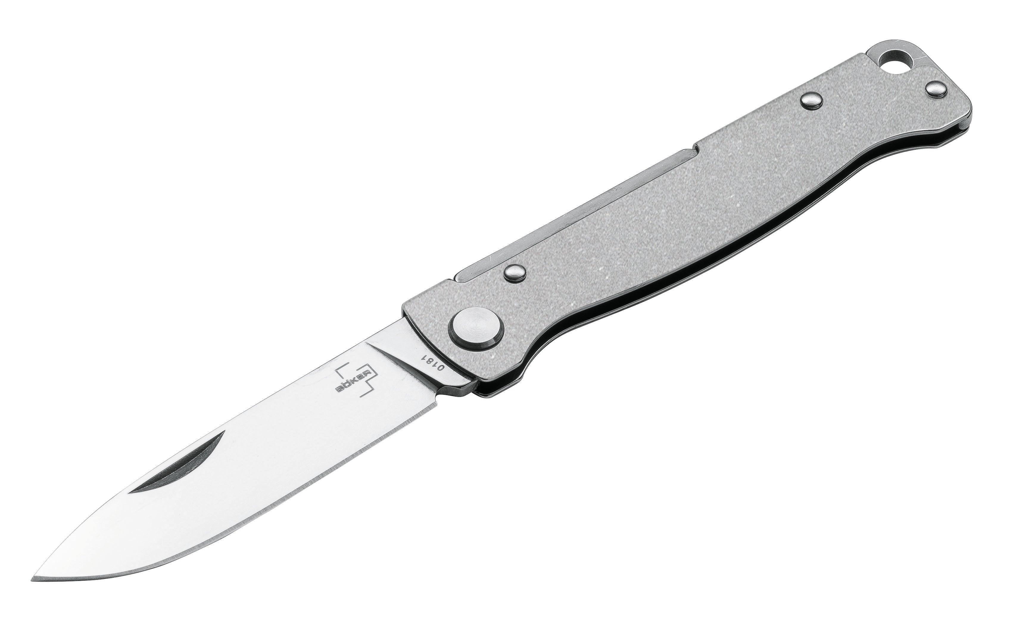 Der Edelstahlgriff im widerstandsfähigen Stonewash-Finish verleiht dem Messer eine dezente, unempfindliche Optik und passt perfekt zum minimalistischen Design. Die satinierte Droppoint-Klinge aus 12C27 Edelstahl wird per Nagelhau geöffnet und meistert alle typischen Schneidarbeiten des Alltags zuverlässig.