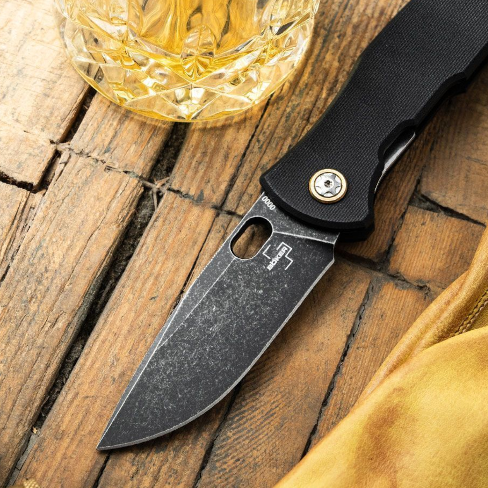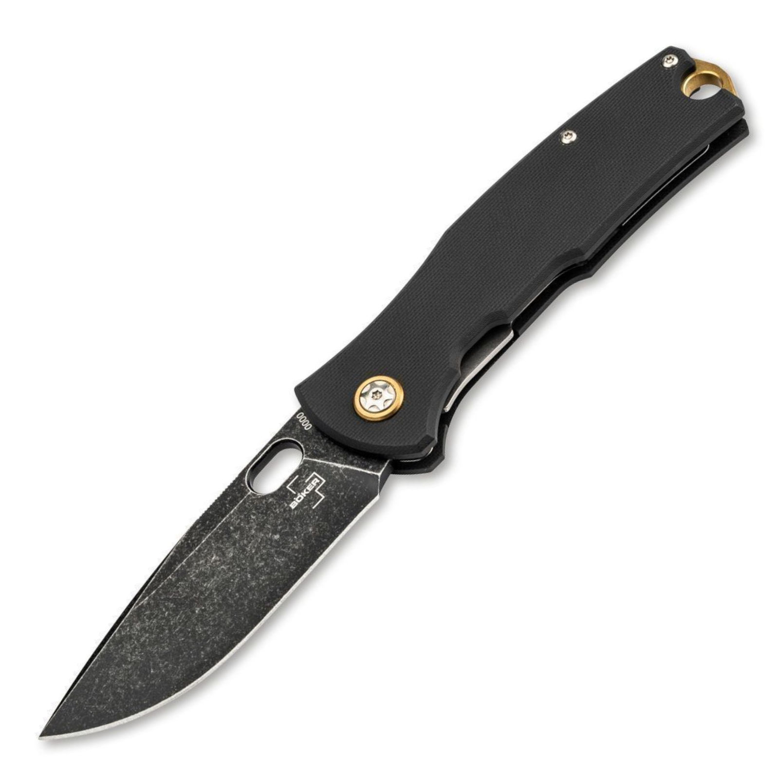 Der Griff aus fein texturiertem schwarzem G10 bietet optimalen Halt – ergänzt durch edle Messingdetails: ein messingfarbener Spacer sowie der elegante Ring um die Klingenachsschraube setzen stilvolle Akzente.