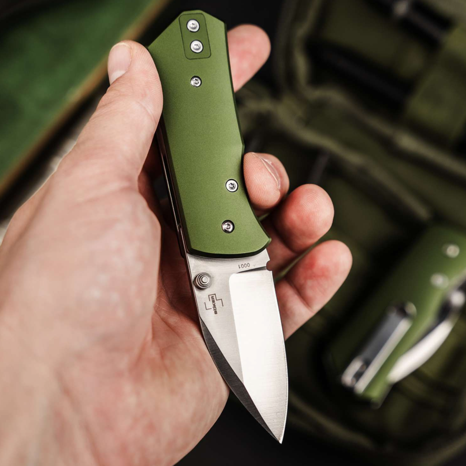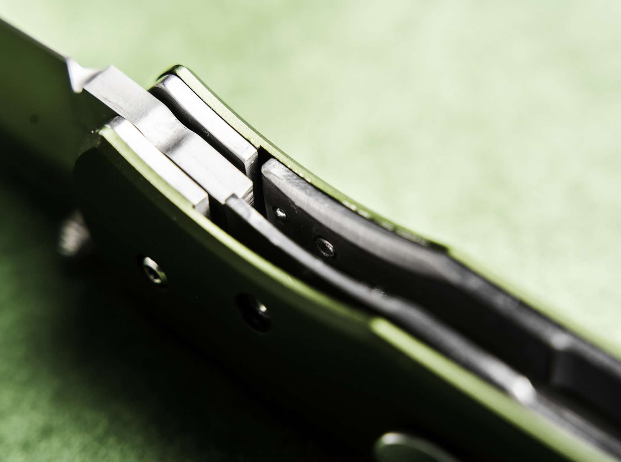Der Griff aus hochfestem 6061-T6 Aluminium in OD-Grün liegt dank massivem Backspacer satt in der Hand und bietet trotz kompakter Maße eine ausgezeichnete Kontrolle für präzise Schneidarbeiten.