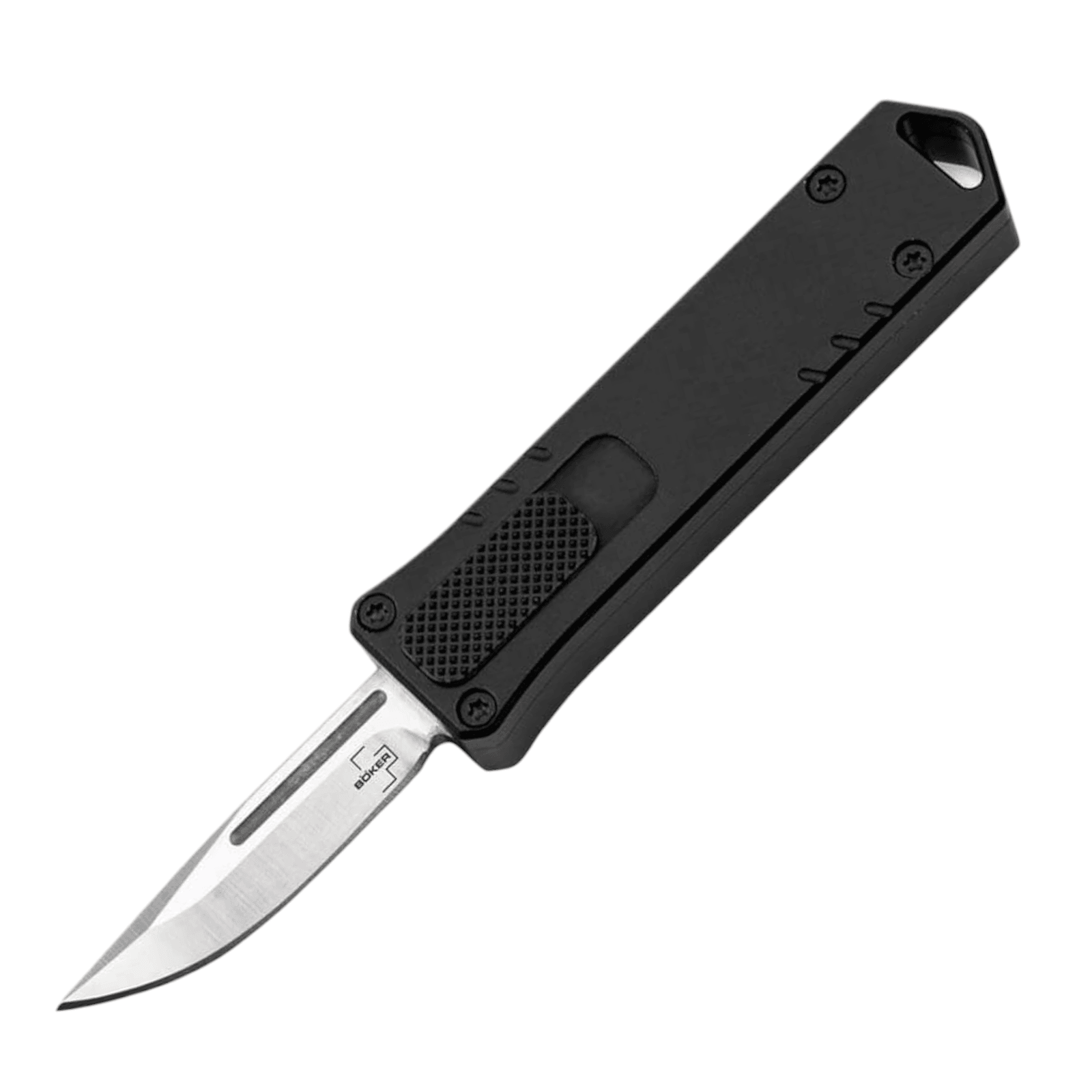 Ein OTF-Messer, kompakt und dynamisch – klingt zu schön, um legal zu sein? Böker macht’s möglich und präsentiert mit dem Böker Plus Micro USB OTF ein in Deutschland gesetzeskonformes OTF-Automatikmesser (Out The Front) mit einer 41 mm langen Gebrauchsklinge. Möglich macht dies die Einstufung des BKA (Aktenzeichen SO13-2022-36166803), unter welcher das Messer aufgrund seiner geringen Klingenabmessungen nicht als Waffe nach §1 Abs. 2b gilt. Entsprechend der Einstufung des BKA wird das Böker Plus Micro USB OTF vom §42a des WaffG erfasst und unterliegt somit der gewohnten Führungsbeschränkung von Einhandmessern. Das kleine Genie zitiert als handliches Automatikmesser das charakteristische Design gängiger USB-Sticks und setzt auf Biss statt Bytes: Kartons, Verpackungen oder Seile werden mühelos von der schnitthaltigen Klinge aus D2 durchtrennt. Das Springmesser verfügt über einen Schieber auf der Vorderseite des Griffs, der die Klinge mit einem energischen Klacken pfeilschnell aus dem Griff hervorkommen- und bei erneutem Betätigen wieder diskret verschwinden lässt. Dank dieser praktischen Einhandbedienung werden kleine Schneidarbeiten des Alltags nahezu im Handumdrehen erledigt. Optisch harmoniert das elegante Satin-Finish der Klinge perfekt mit dem schwarzen Griff aus CNC-gefrästem 6061-T6 Aluminium und dem kernigen Tip-Down (r) Clip. Weg vom Computer, hinein ins Alltagsabenteuer - noch nie hat USB so viel Spaß gemacht!
