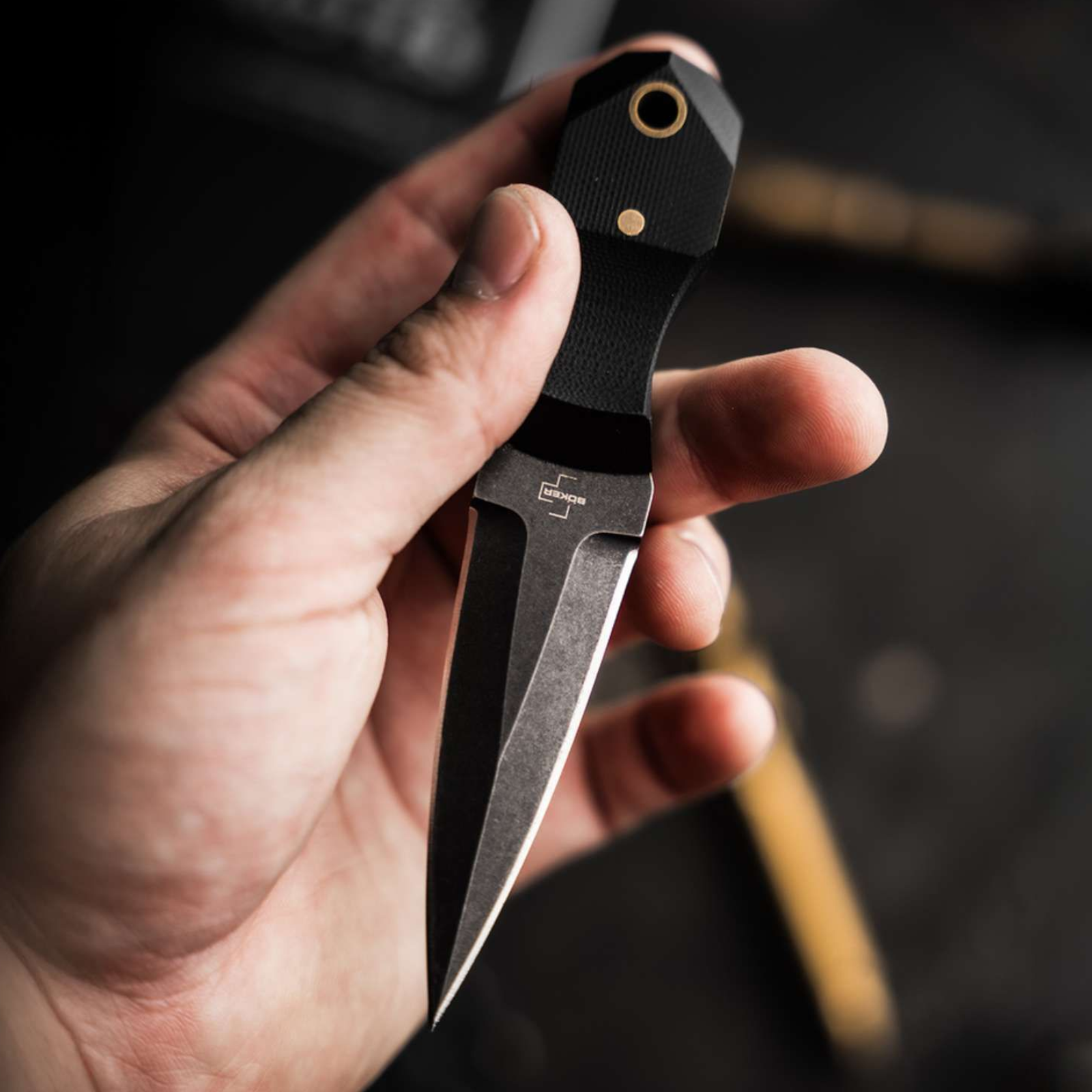 Dolchklinge aus D2-Stahl mit Black-Stonewash-Finish – schnitthaltig & widerstandsfähig