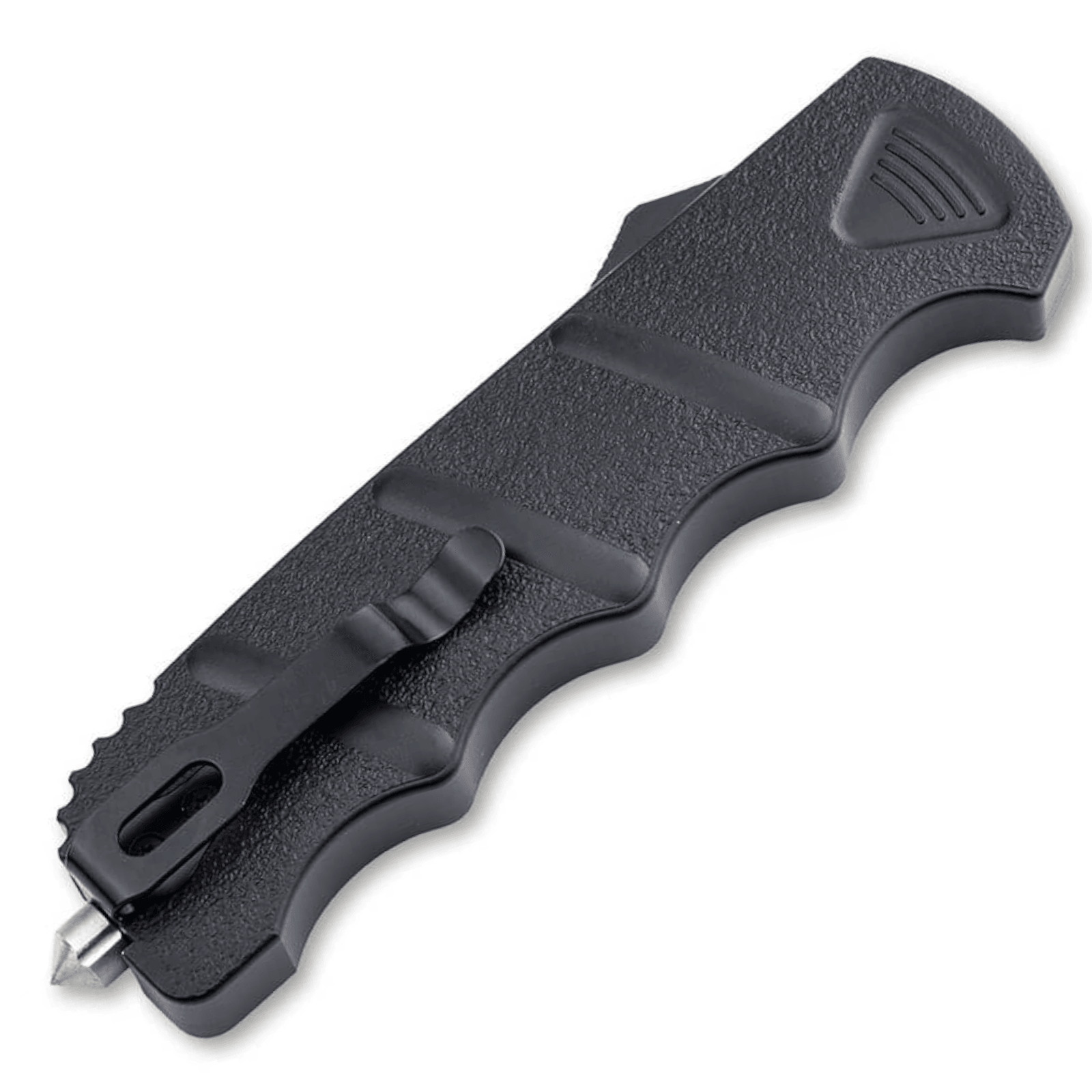 Der für den Griff verwendete Werkstoff Aluminium weist die erforderte Festigkeit bei gleichzeitig geringem Gewicht auf. Der unverzichtbare Glasbrecher zum Zertrümmern von Seitenscheiben wurde mit einem effektiven steilen Kegel versehen. Der Kern des Glasbrechers ist aus extrem hartem Wolframcarbid gefertigt. Für einen problemlosen Austausch bei Verschleiß wurde der Glasbrecher mit Schraubgewinde mit dem Griff verbunden. Ein Deep-Carry-Federstahl-Clip und Nylonetui. Ges. 22 cm. Kl. 9 cm. Stärke 2,8 mm. Gew. 143 g.