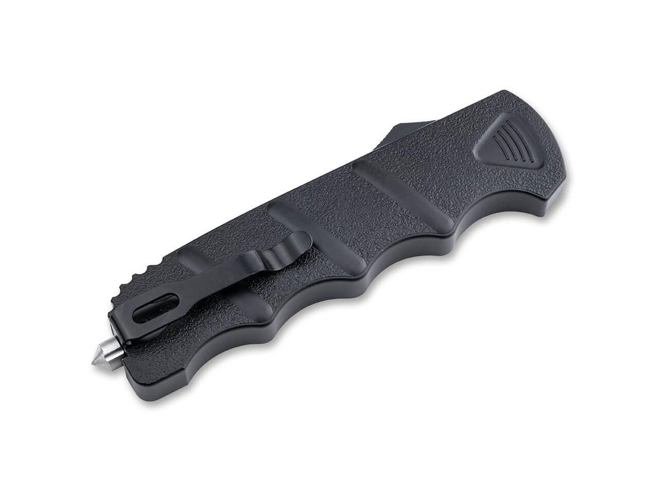 Herzstück des Rettungswerkzeugs ist ein klassischer Springmechanismus mit Daumenschieber, der die Klinge bei Betätigung kraftvoll hervorschnellen oder aber vollständig in den Griff zurückgleiten lässt. Der absolut zuverlässig arbeitende und bewährte Mechanismus mit kräftiger Feder wurde von den OTFs der Springmesserserie Kalashnikov übernommen, die Böker seit vielen Jahren im Ausland wie z.B. in Frankreich oder in den USA vertreibt.