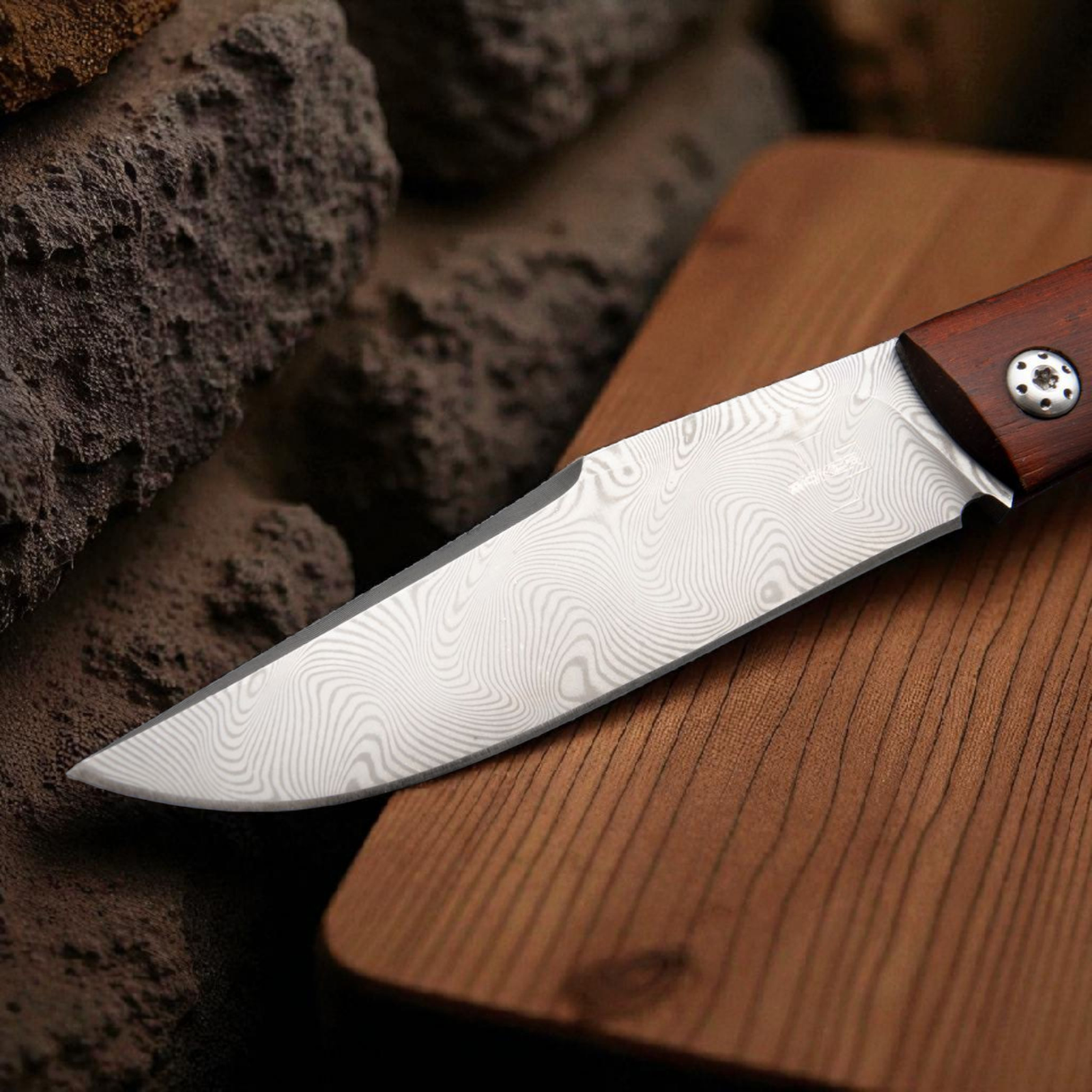 Der schlanke Griff aus edlem Cocoboloholz verleiht dem Messer eine warme, luxuriöse Anmutung. Großzügige Gewichtsreduzierungen in den Platinen sorgen für hervorragenden Tragekomfort. Entworfen wurde das Messer vom renommierten französischen Messermacher Raphaël Durand, bekannt für seine zeitlos-klassischen Designs.
