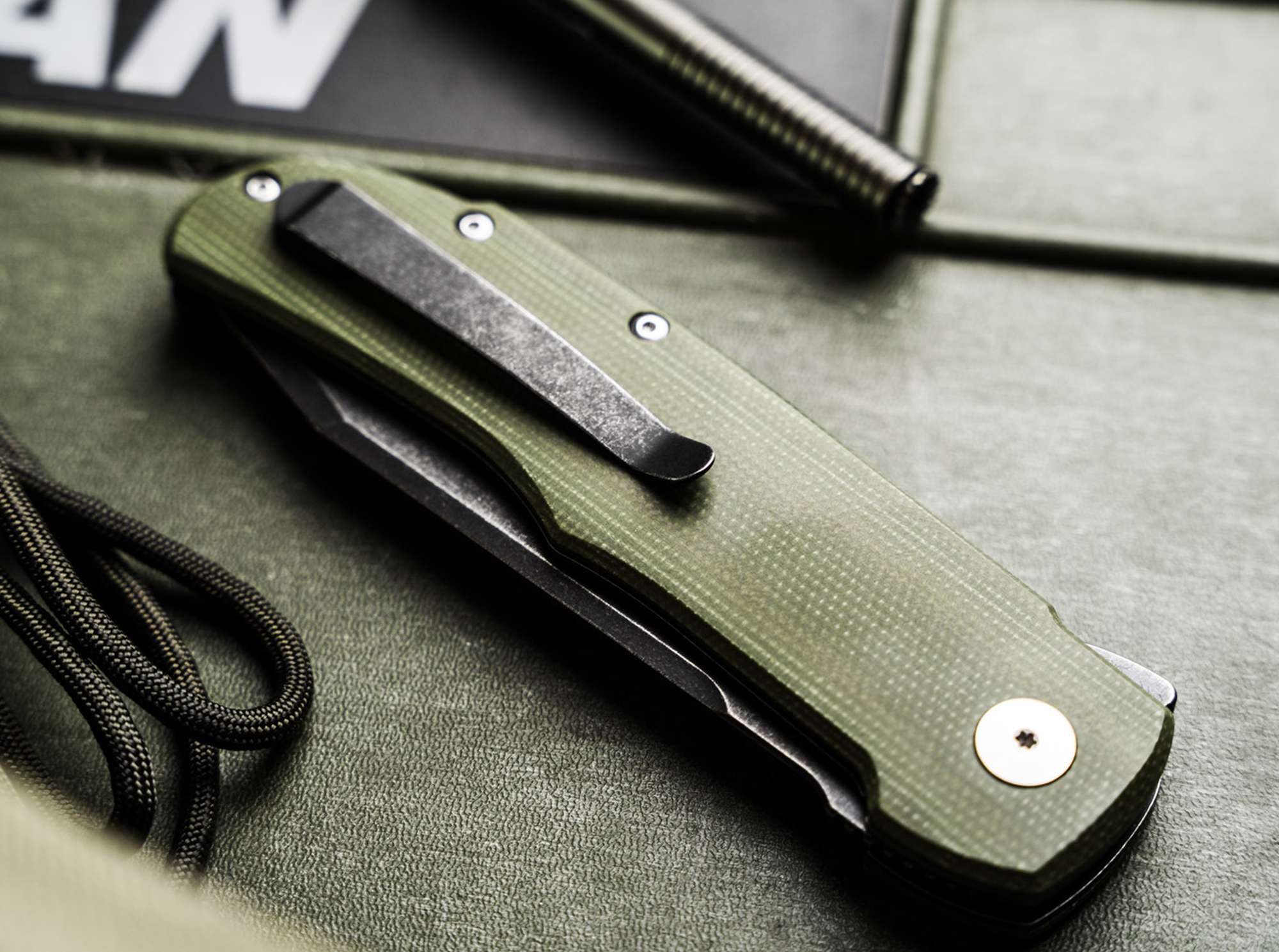 Griffmaterial: Micarta, ergonomisch, rutschfest, olivgrün