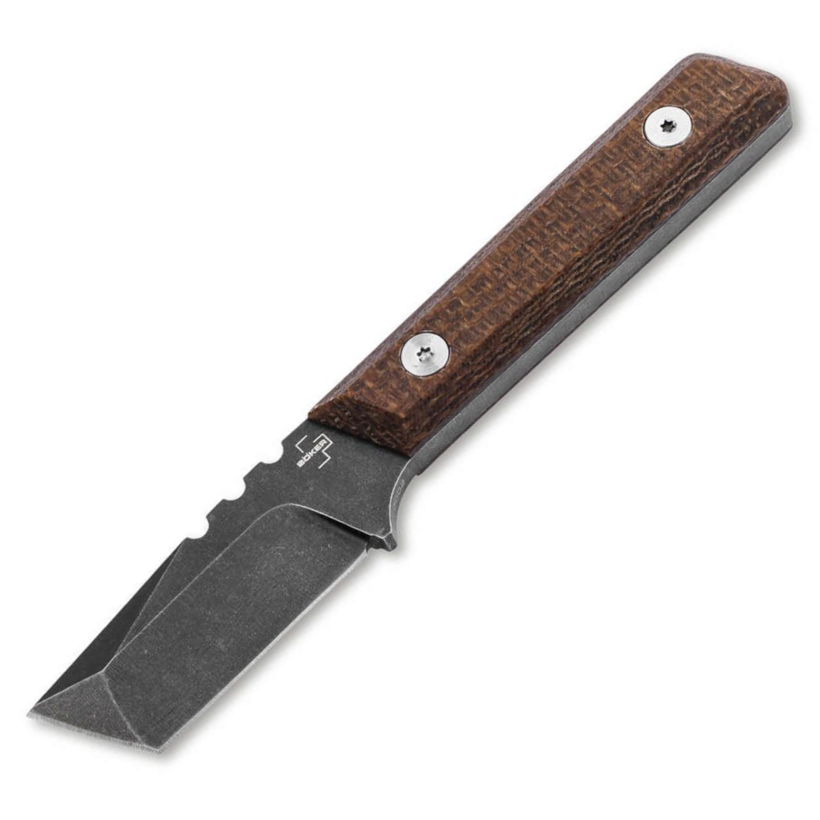 Die konturierten Micarta-Griffschalen in intensivem Braun sorgen für sicheren Halt und angenehme Ergonomie – auch bei längerer Nutzung. Geliefert wird das Messer mit einer passgenauen Kydexscheide, die einen sicheren Transport ermöglicht.