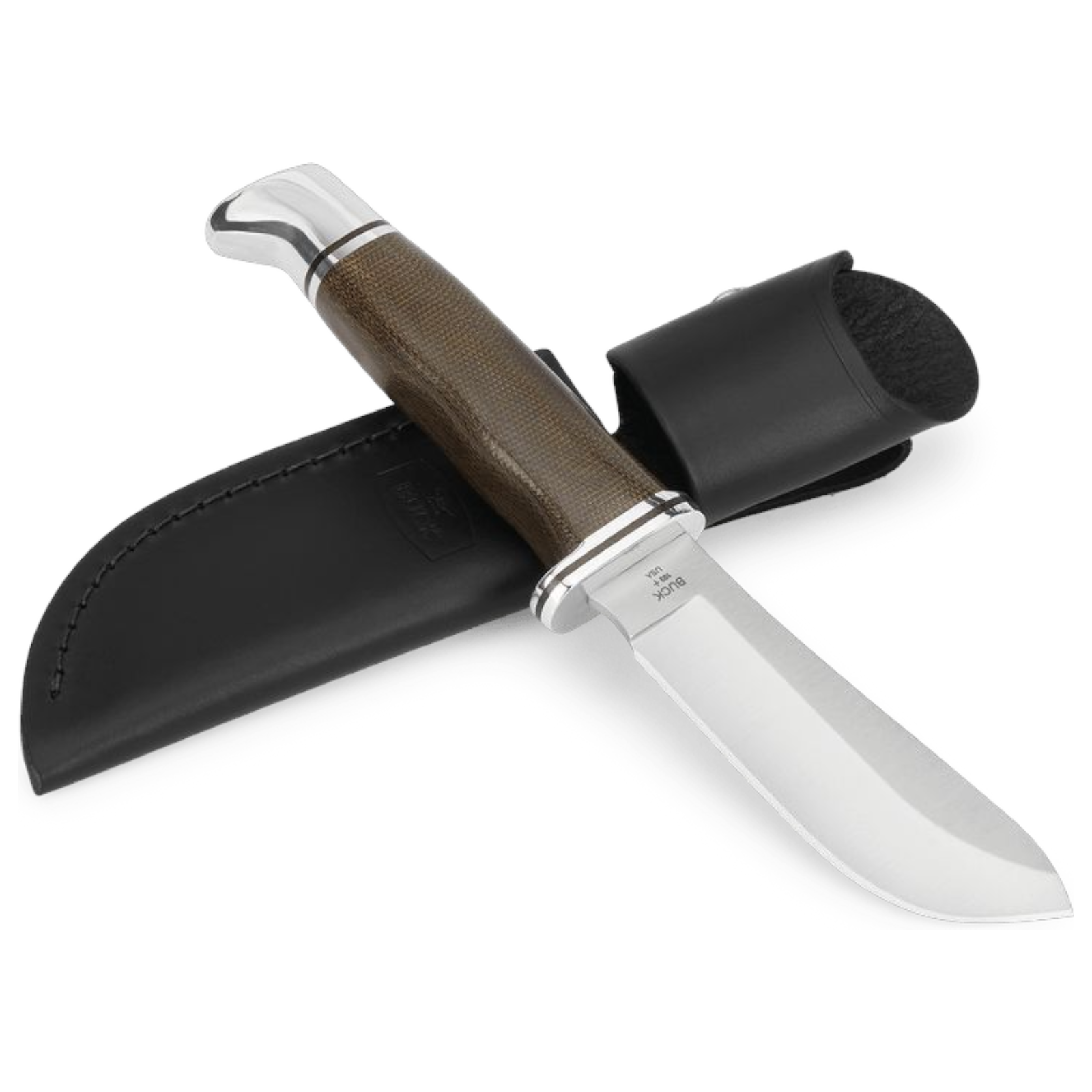 Der stilvolle Griff aus grünem Leinen-Micarta ist ergonomisch geformt und mit Fingermulden versehen. Poliertes Aluminium an Fingerschutz und Knebel verleiht dem Messer nicht nur optische Eleganz, sondern auch zusätzliche Stabilität. Geliefert wird das Skinner Pro mit einer hochwertigen Lederscheide zur sicheren Aufbewahrung und dem komfortablen Tragen am Gürtel.