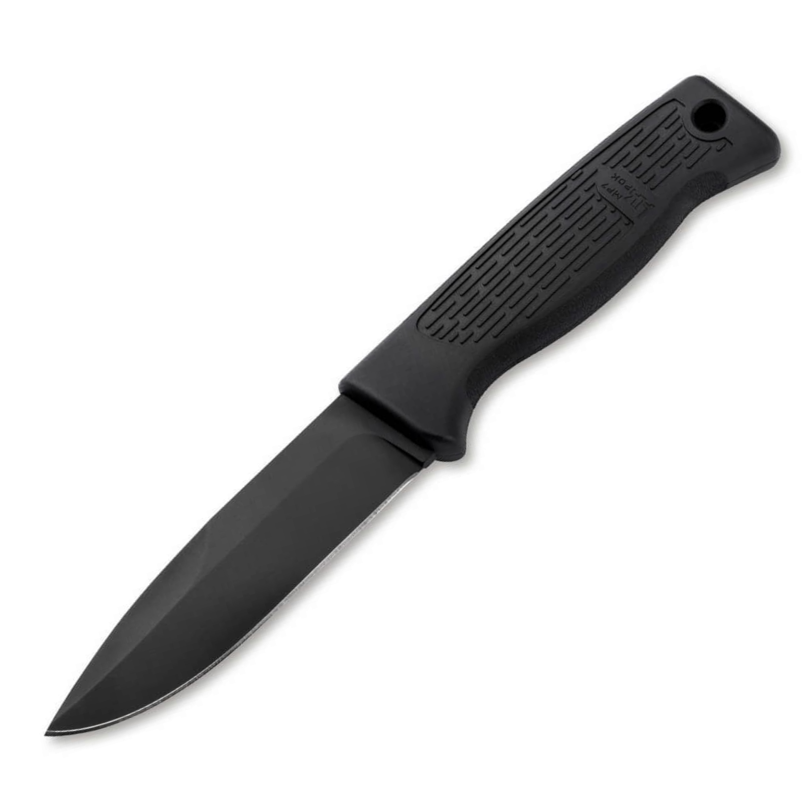 Die schwarz beschichtete Spearpoint-Klinge aus 14C28N-Stahl bietet hohe Härte, Schnitthaltigkeit und Korrosionsbeständigkeit. Die Full-Tang-Konstruktion garantiert maximale Stabilität, während der robuste FRN-Griff (glasfaserverstärktes Nylon) für eine sichere Handhabung sorgt.