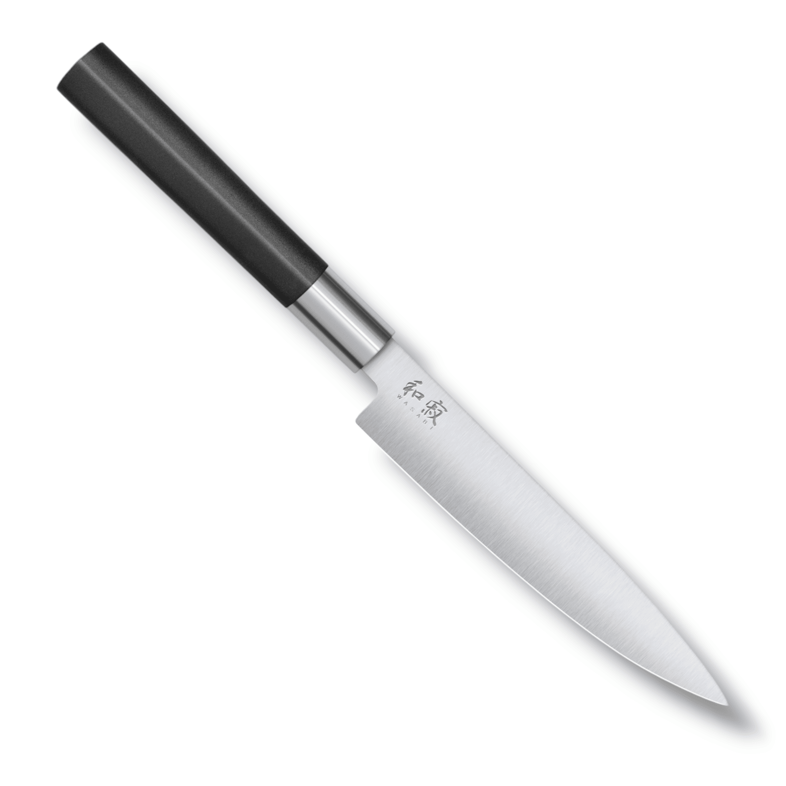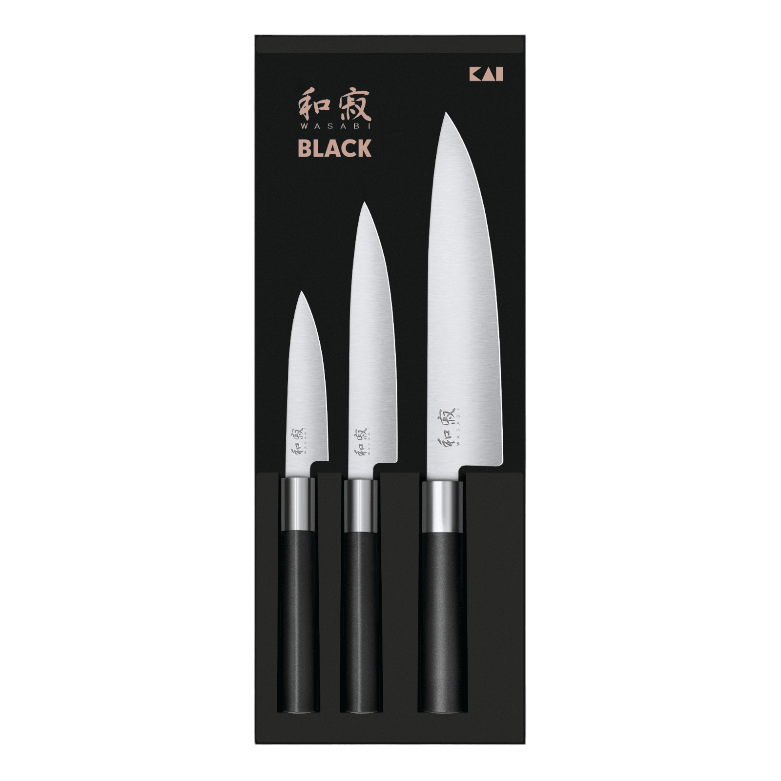 Die polierten Klingen der Wasabi Black-Serie sind aus neu entwickeltem, korrosionsbeständigem 6A/1K6-Stahl mit einem Härtegrad von 58 (±1) HRC gefertigt. Die umfangreiche Serie bietet sowohl beidseitig geschliffene, als auch traditionell japanische Klingenformen mit einseitigem Schliff. Der leicht überwölbte Klingenrücken erlaubt einen sicheren Griff beim Arbeiten, was beispielsweise feine Wiegebewegungen erleichtert.