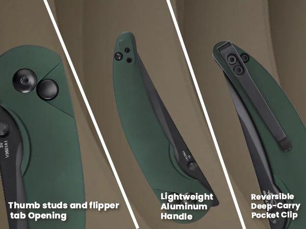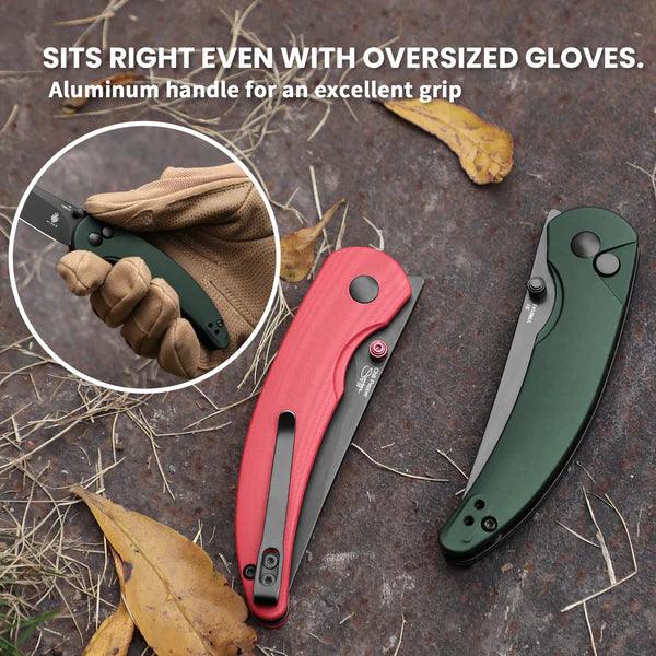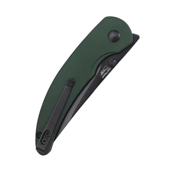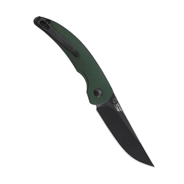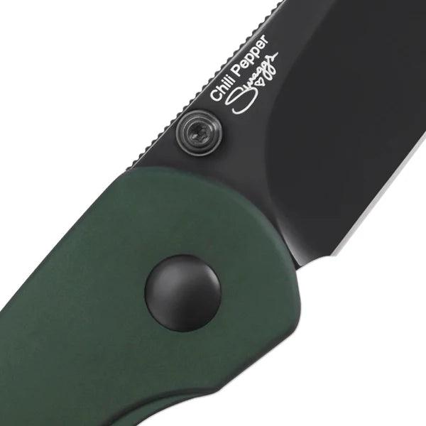 Lust auf eine Prise Schärfe? Das Kizer Chili Pepper liefert sie gleich doppelt. Mit seinem Design und der Farbgebung erinnert das EDC-Messer stark an eine Chilischote, aber auch die scharfe, schwarze Klinge aus pulvermetallurgischem CPM-3V-Stahl sorgt für einen erhitzten Kopf. Der Folder lässt sich entweder über den Flipper oder den Daumenpin öffnen, während der Button-Lock im grünen Aluminium-Griff das Messer sicher arretiert. Ein besonderes Extra ist der umsetzbare Tip-Up-Clip, der dem Folder eine zusätzliche Würze verleiht.