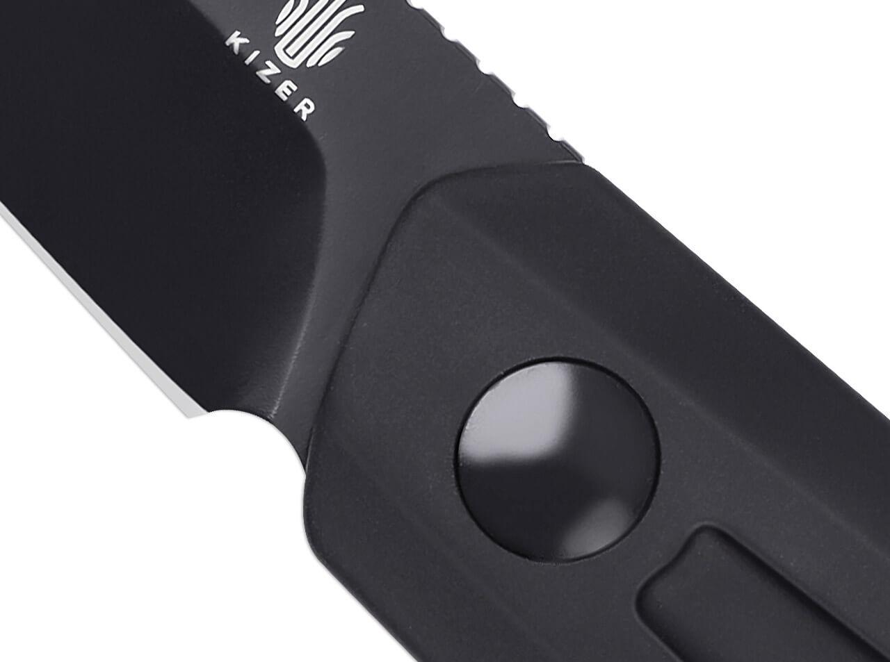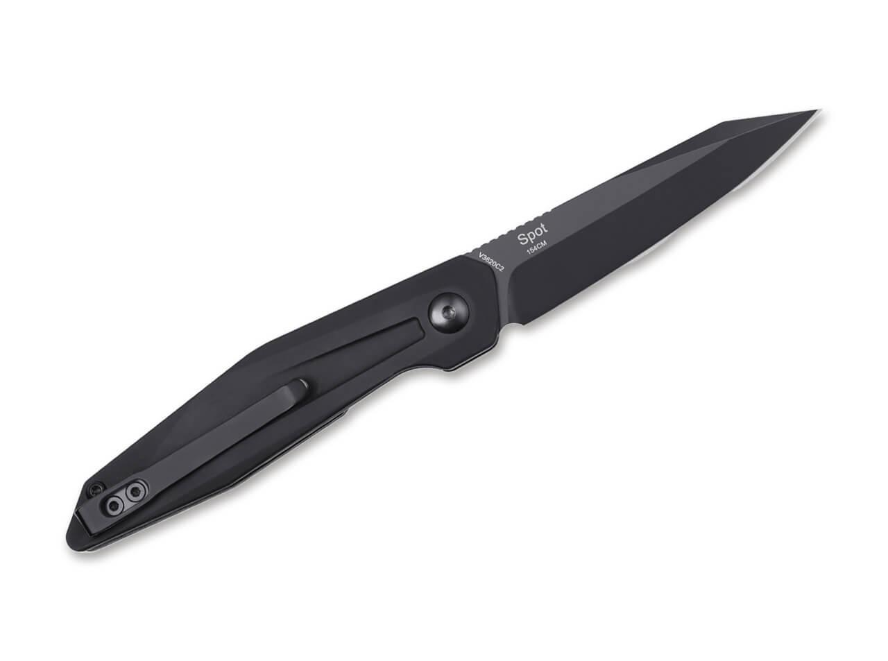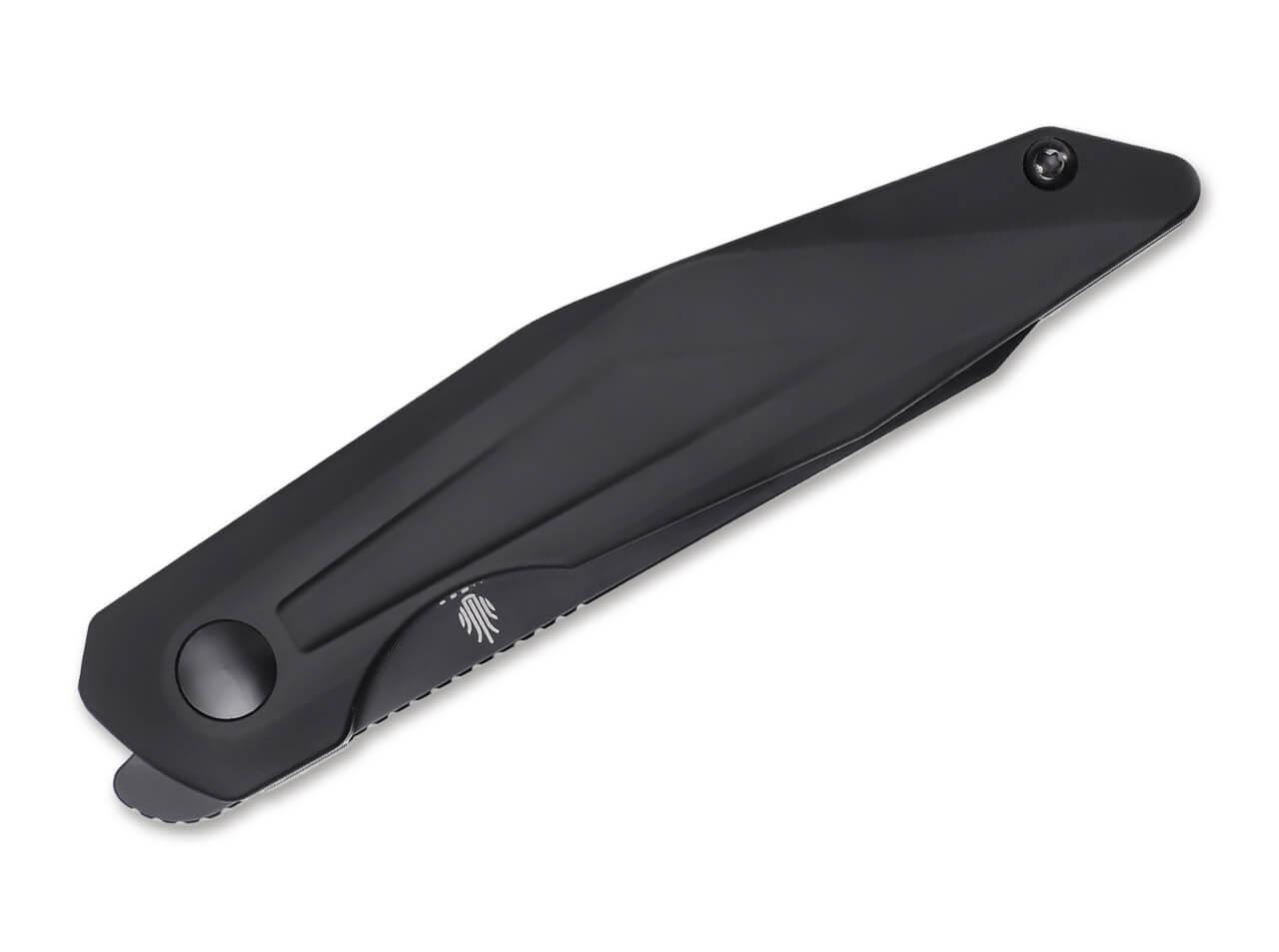 Das gesamte Messer ist in Schwarz gehalten, was ihm eine elegante und dezente Optik verleiht. Es verfügt über eine Frontflipper-Öffnung mit Kugellager, die ein reibungsloses Öffnen und Schließen gewährleistet.