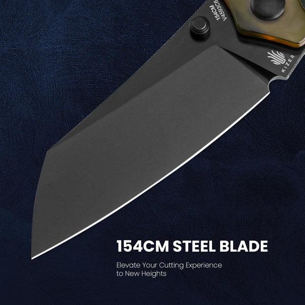 Die Klinge besteht aus 154CM-Stahl. Dieser Stahl wurde ursprünglich als Industriematerial entwickelt (der Turbinenschaufelstahl der Boeing 747 ist 154CM). Die Eigenschaften sind relativ ausgewogen, und der Stahl bietet sowohl gute Korrosionsbeständigkeit als auch hervorragende Schnitthaltigkeit.
