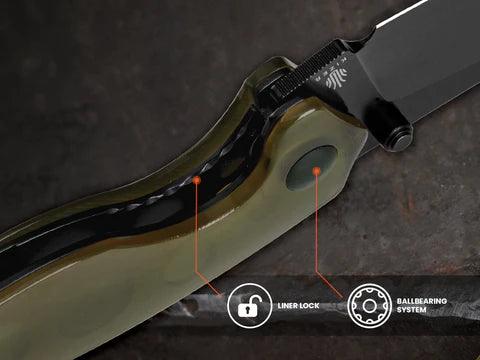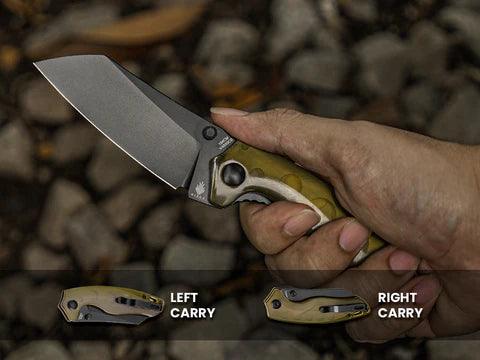 Doppelte Daumenpin-Öffner mit Kugellager-Pivot ermöglichen ein schnelles und einfaches Öffnen. Der umsetzbare Deep-Carry-Taschenclip sorgt für eine bequeme Tragemöglichkeit.