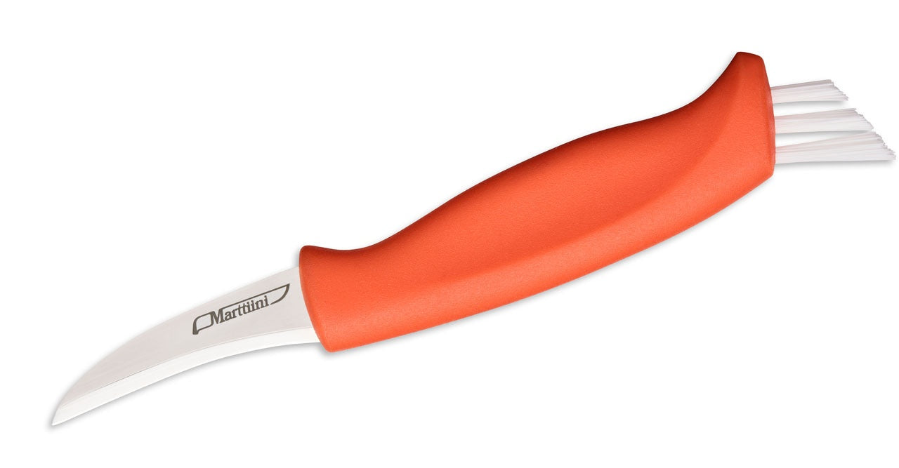 Die gebogene Edelstahlklinge (5 cm) ermöglicht ein sauberes Schneiden des Pilzstiels, ohne das empfindliche Myzel im Boden zu beschädigen. Am Griffende befindet sich eine Nylonbürste, die fest genug ist, um Schmutz und Ablagerungen zu entfernen, dabei aber schonend genug bleibt, um die Pilze nicht zu verletzen.