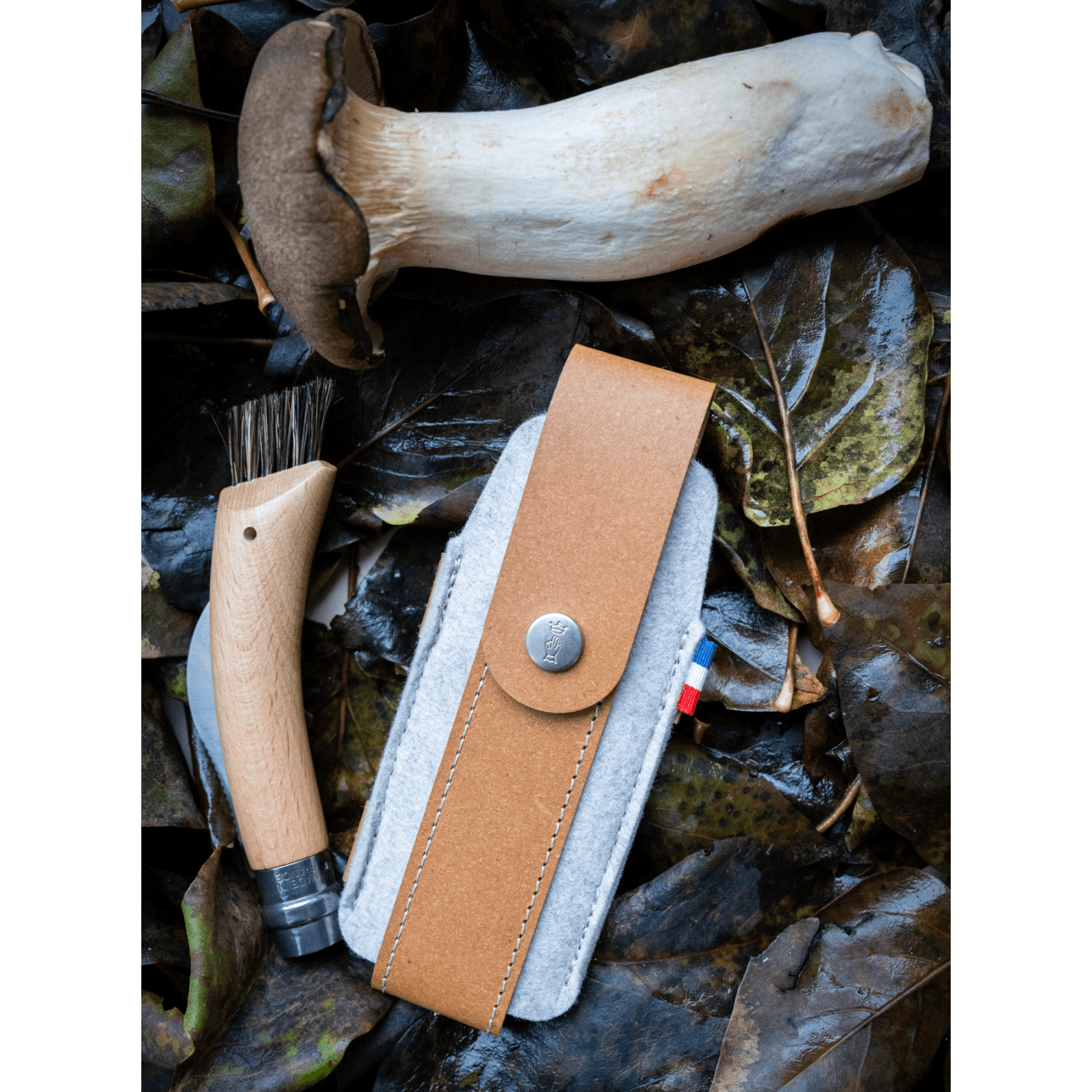 Das Outdoor-Etui L aus der Collection France von Opinel ist speziell für den Transport verschiedener Taschenmesser konzipiert, darunter die Modelle N°09, N°10, das Pilzmesser N°08 sowie das N°10 mit Korkenzieher und Flaschenöffner.