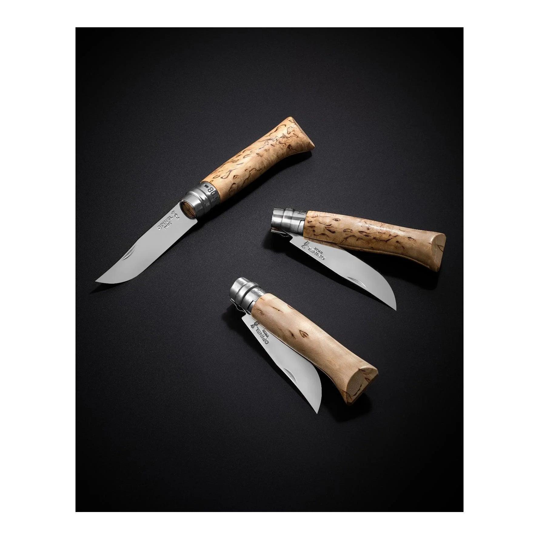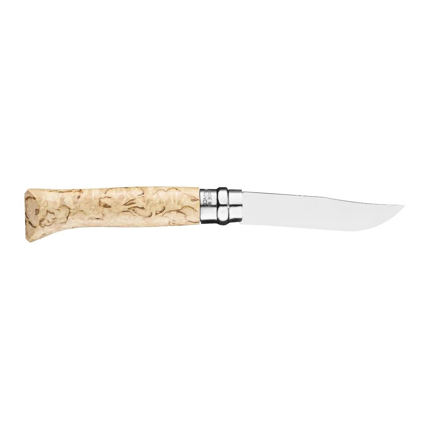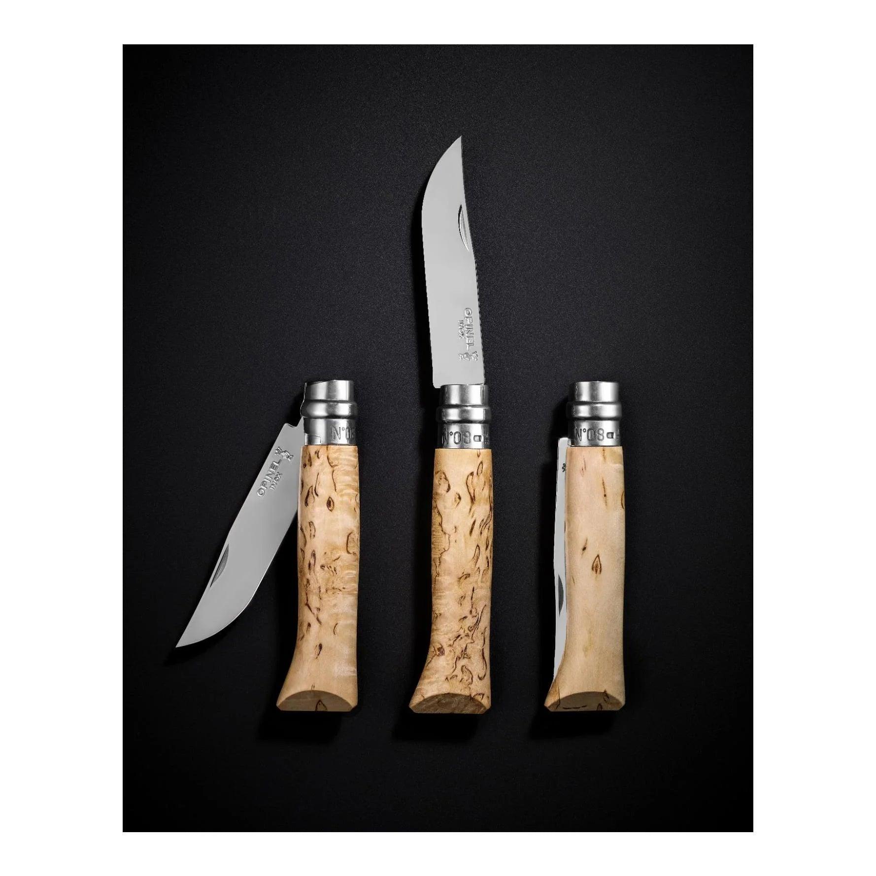 Das auf weltweit 6750 Stück limitierte Modell Opinel No. 08 SAMPO hat einen Griff aus attraktiver finnischer Maserbirke. Die hochglanz-polierte Klinge ist aus rostfreiem Sandvik-Stahl 12C27M gefertigt. Die von Opinel-Messern bekannte Arretierung, der Virobloc-Ring, fixiert natürlich auch bei diesem Modell die Klinge im geschlossenen und geöffneten Zustand. LIMITED EDITION!
