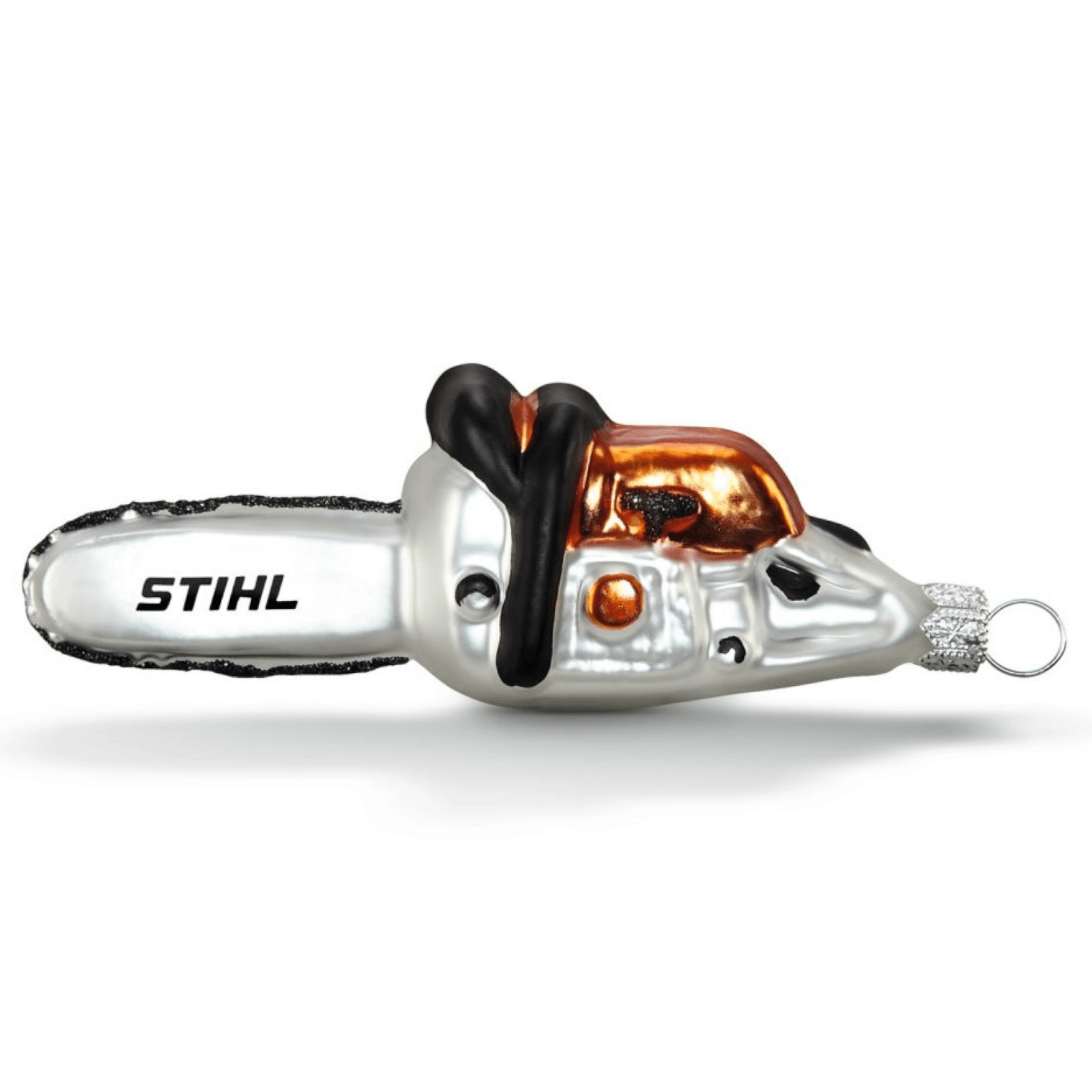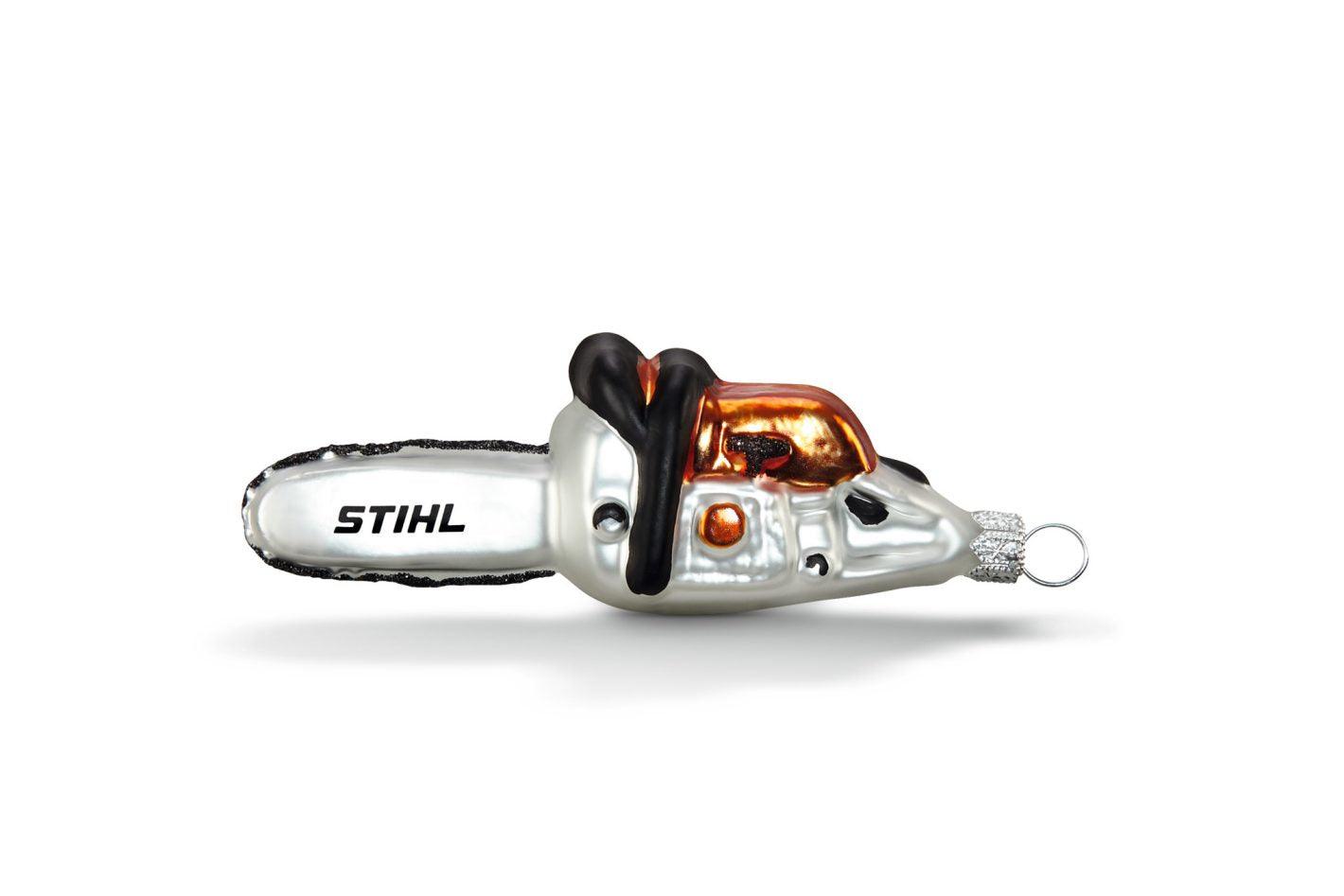 Die STIHL Weihnachtsbaumkugel Motorsäge ist eine ausgefallene und dennoch festliche Dekoration für Ihren Weihnachtsbaum. In Form einer Motorsäge gestaltet, ist dieser Baumanhänger ein echter Blickfang und perfekt für alle, die das Besondere suchen.