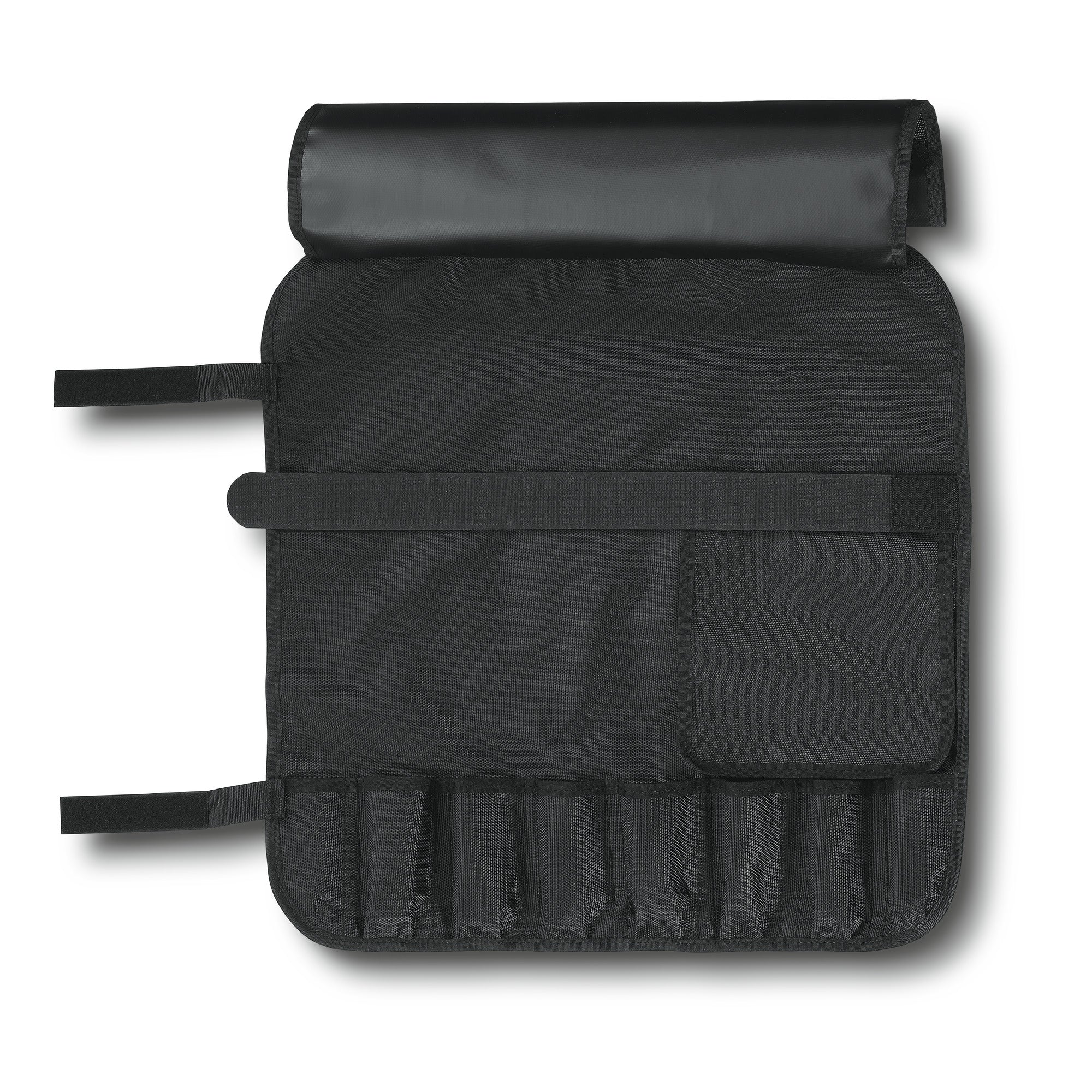 Praktische und robuste Messertasche zur sicheren Aufbewahrung und Transport von bis zu 8 Messern. Hergestellt aus strapazierfähigem Polyamid in schwarzer Farbe.