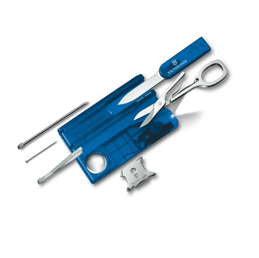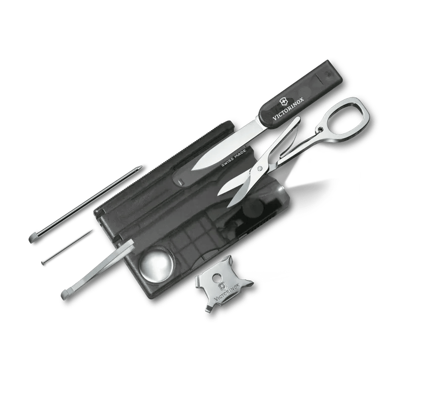 Kompaktes Design: Trotz ihrer geringen Größe bietet die Swiss Card eine Vielzahl von Werkzeugen, die in einem schlanken, kreditkartengroßen Gehäuse untergebracht sind. Dies macht sie äußerst tragbar und bequem in jeder Brieftasche oder Tasche mitzuführen.