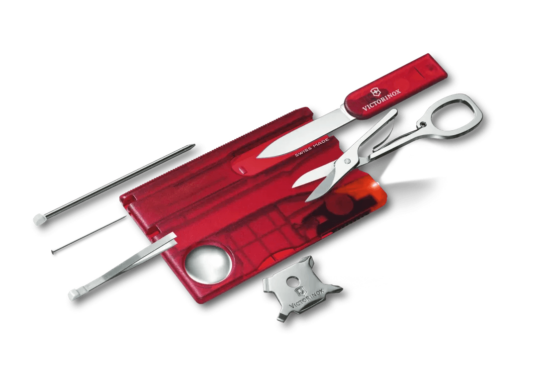Vielseitige Werkzeuge: Die Swiss Card enthält eine Vielzahl von nützlichen Werkzeugen, die im Alltag häufig benötigt werden. Zu den typischen Werkzeugen gehören unter anderem: