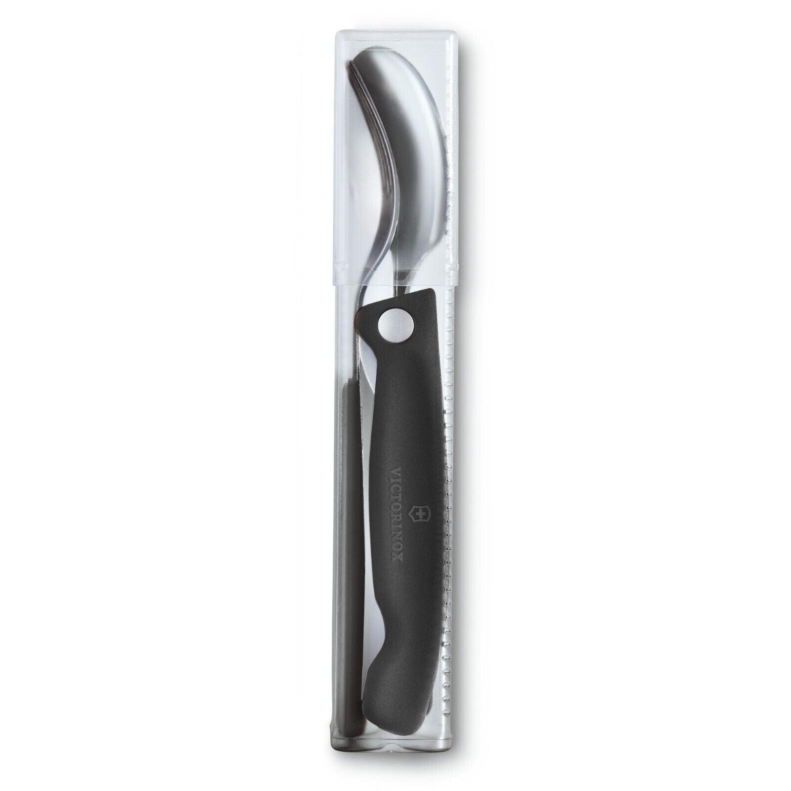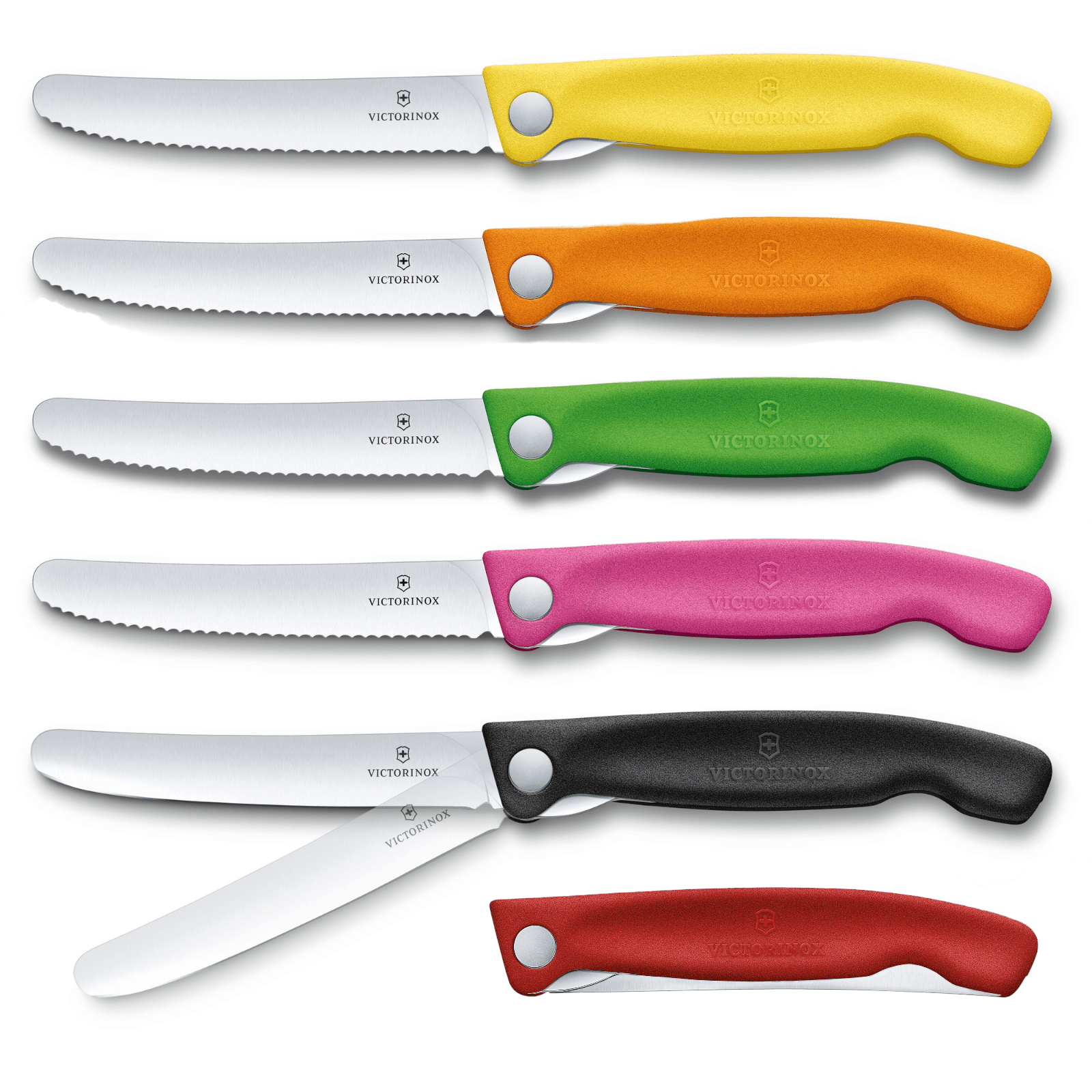 Ein kompaktes, praktisches und vielseitiges Messer zum Schälen und Zerkleinern von Obst und Gemüse Gemüsemesser mit Wellenschliff, hergestellt in der Schweiz Die rostfreie Stahlklinge lässt sich gesichert im Griff unterbringen