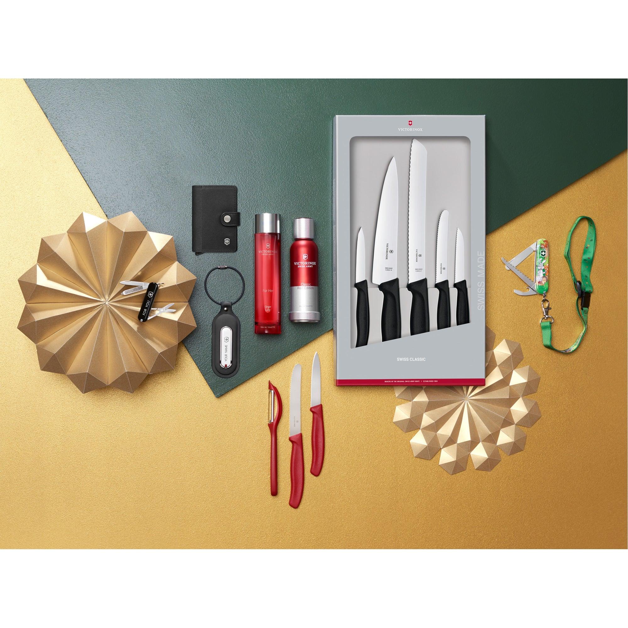 Ein vielseitiges Messerset ist ein unverzichtbares Werkzeug in jeder Küche, die kulinarische Kreativität fördert. Mit der robusten und langlebigen 5-teiligen Swiss Classic Küchengarnitur von Victorinox sind Sie bestens ausgestattet, um all Ihre Schneidarbeiten mühelos zu erledigen. Ob Hacken, Schneiden, Würfeln oder Schälen – dieses Set bietet die perfekte Kombination aus wendigen Messern, die einfach zu handhaben sind und ideal für den täglichen Gebrauch geeignet sind.