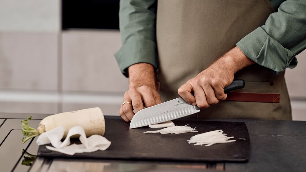 Gefertigt in der Schweiz, steht das Santokumesser für höchste Qualität und Zuverlässigkeit.