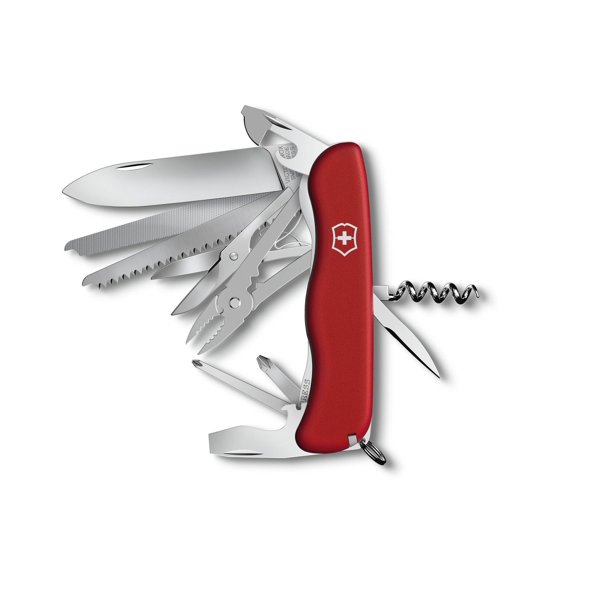 Robust, solide und immer bereit. Das Work Champ ist die ultimative Werkzeugkiste im Hosentaschenformat. Diese Mischung aus Arbeitspferd und Champion wartet mit stolzen 21 Funktionen auf, die immer und überall ganze Arbeit leisten. Von der Kombi-Zange über Metallsäge und -feile, Drahtabisolierer und Holzsäge bis zum Korkenzieher, Phillips-Schraubendreher und dem Dosenöffner gibt es nichts, dass ihm ein Hindernis ist.